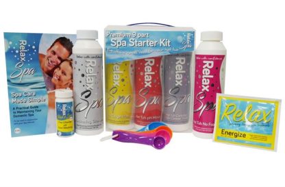 The 9-part Spa Starter Kit contains everything you need to get your spa water sparkling and safe to use with Bromine rather than Chlorine. Each kit comprises of the following: